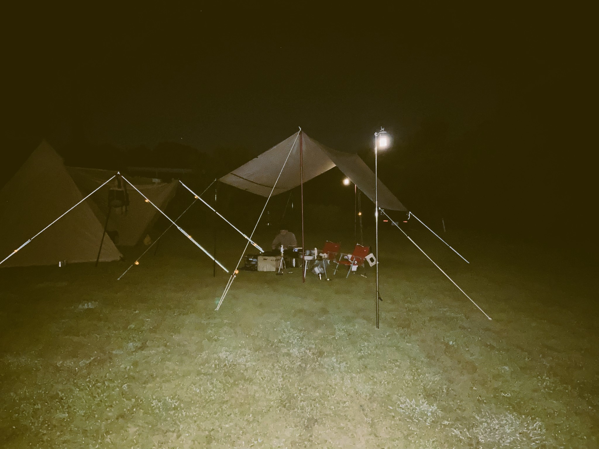 無事設営終わってご飯食べました。写真ないけど、マルチグリルで、サンエーのハンバーグ、