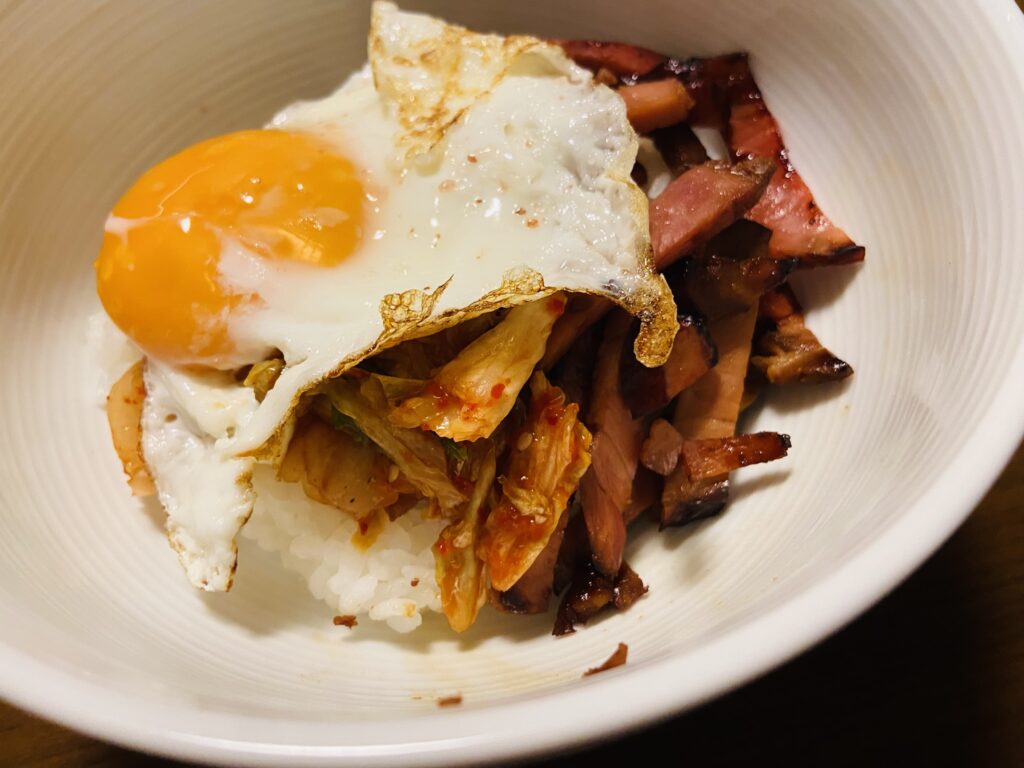 チャーシュー目玉焼きキムチ丼!!これめっちゃ美味しいの!!